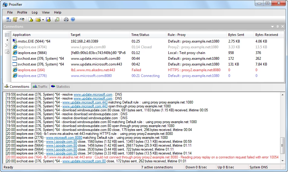 Proxifierè un potente strumento per offrire server proxyper diverse applicazioni di rete che non possono funzionare tramite server proxy. Aiuta gli utenti a navigare in modo anonimo e a sbloccare siti Web bloccati utilizzando una grande catena di protocolli proxy tra cui SOCKS v4, SOCKS v4A, SOCKS v5, HTTPSe HTTP.